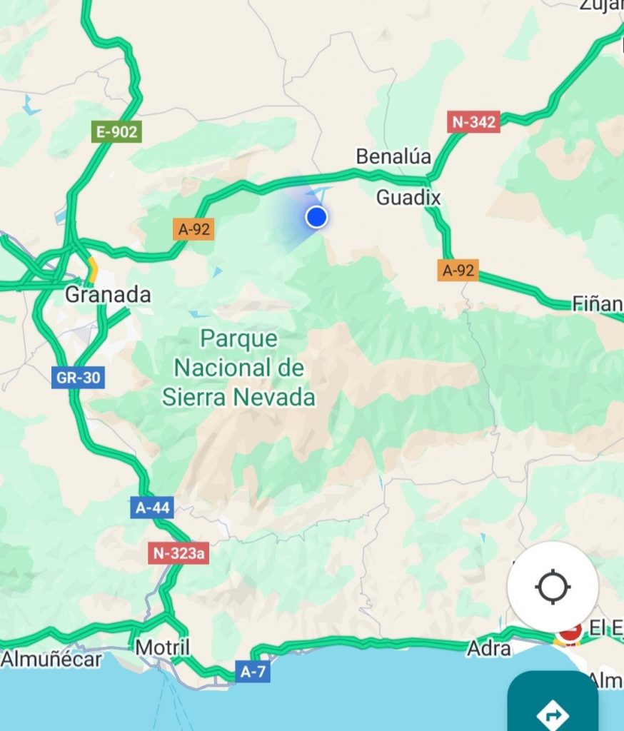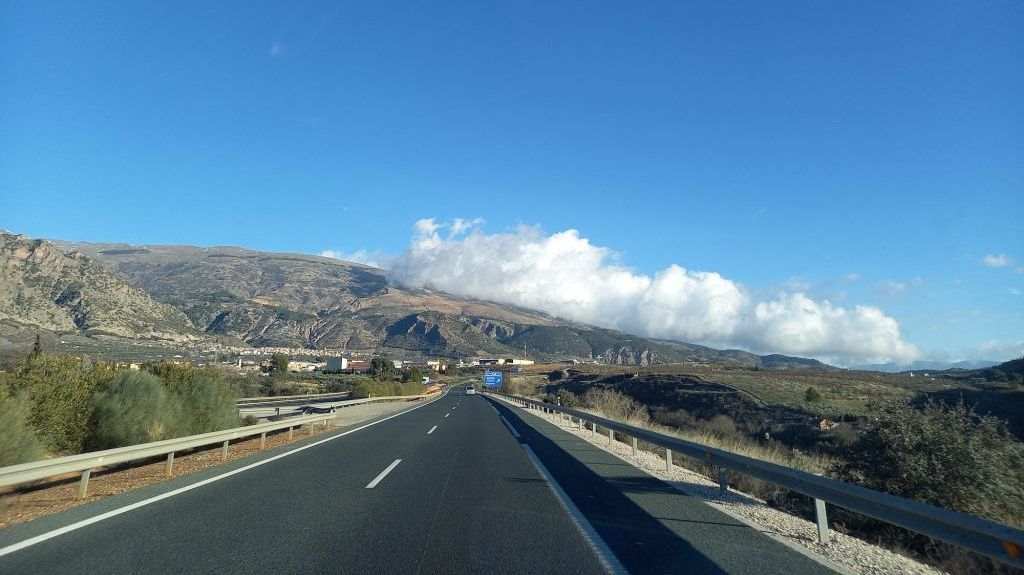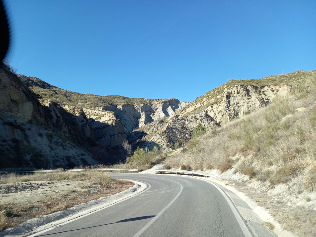 … und fahren auf einer kleinen Straße über einen Pass (1297 müNN) durch die Sierra Nevada zwar Richtung Granada, werden aber dann quasi nach rechts zum Meer hin abbiegen 😊.