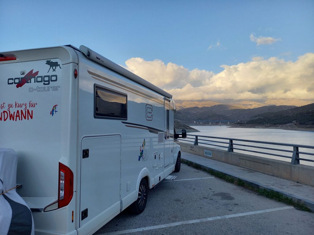 Nach nur knapp 90 km stehen wir auf einem Parkplatz am Staudamm Presa de Rules bei Vélez de Benaudalla.