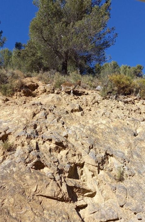 Hier ist kaum bis gar kein Verkehr und so dürfen wir Bergziegen beobachten, die, aufgeschreckt durch unser Kommen, von der Straße rechts den Berg raufklettern. Wahre Kletterkünstler 🙂.