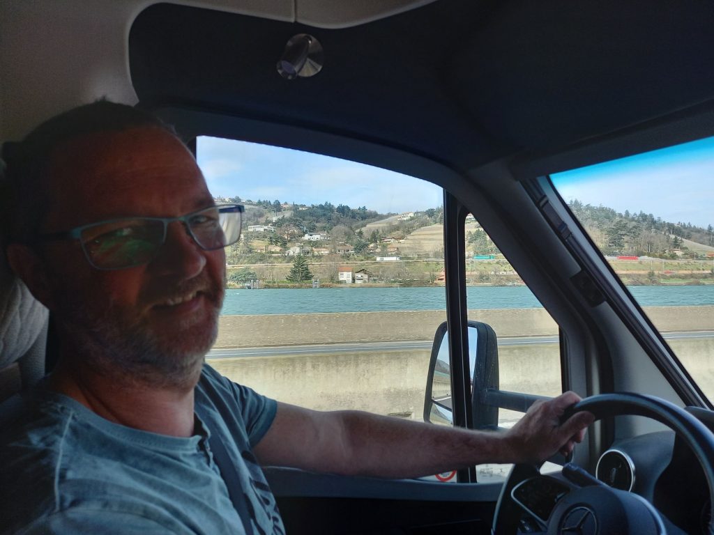 Wir fahren zunächst bei Sonnenschein auf die RN7 an Vienne vorbei Richtung Lyon und dann auf eine mautfreie Autobahn.