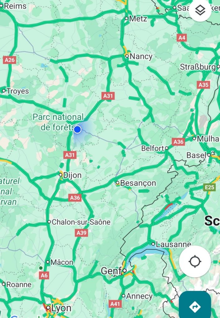 Danach geht es zunächst weiter über Landstraßen, dann aber erneut auf die mautpflichtige A6 (später A31). Damit umfahren wir Dijon und kommen zugegebenermaßen sehr viel schneller und stressfreier voran.