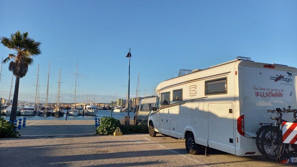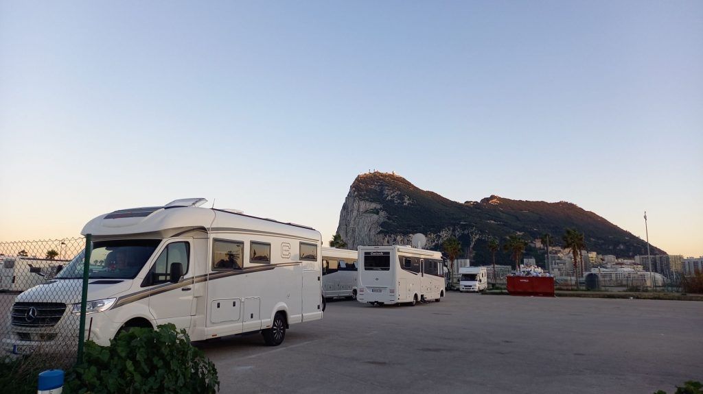 Gegen 14 Uhr und nach 114 km stehen wir auf dem großen Wohnmobilstellplatz  in La Linea de la Concepción, an der Grenze zu Gibraltar.