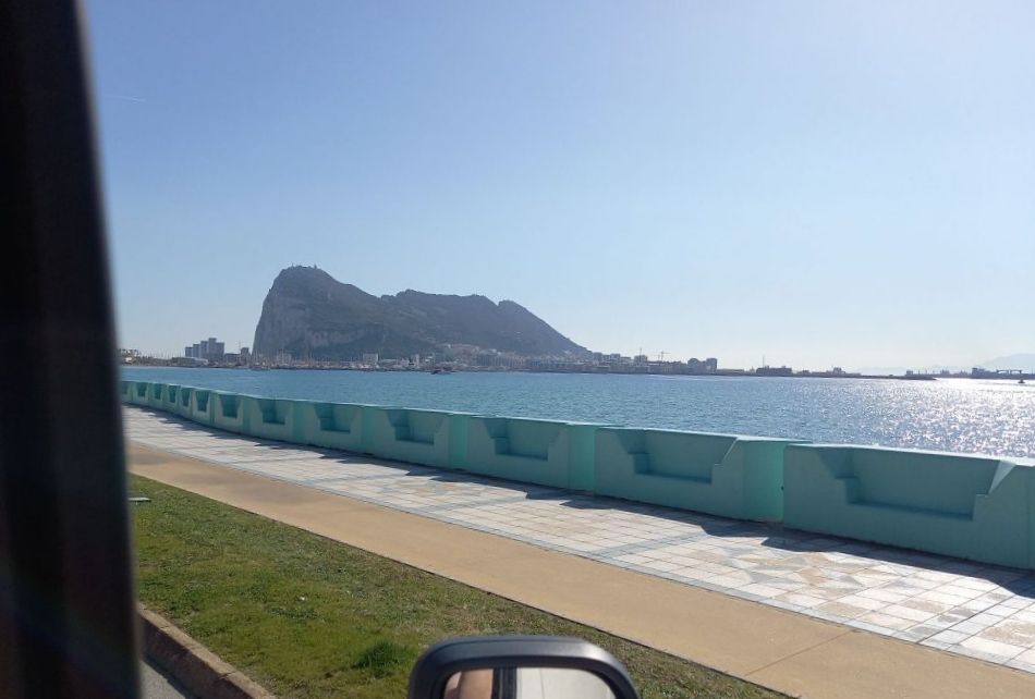 Im Hintergrund der Felsen von Gibraltar
