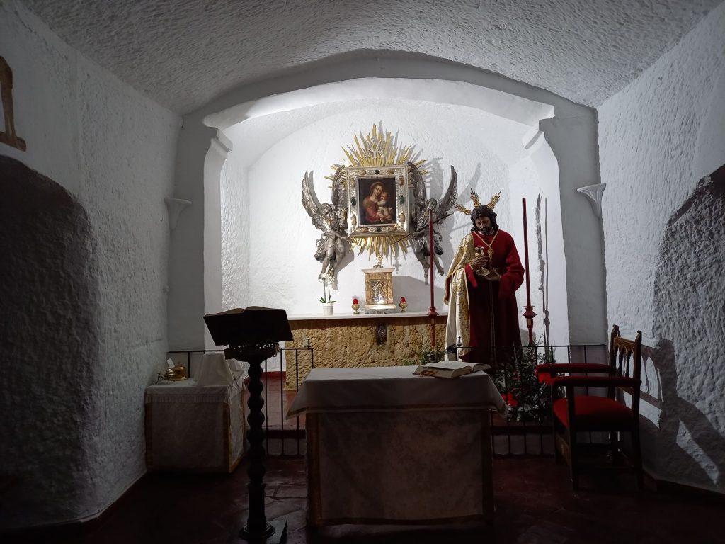 Die Hunde mögen die holprige Fahrt nicht und sitzen auf unserem Schoß. Wir fahren in das Höhlenviertel und halten direkt an der Höhlenkirche Iglesia Cueva “Ermita Nueva”.