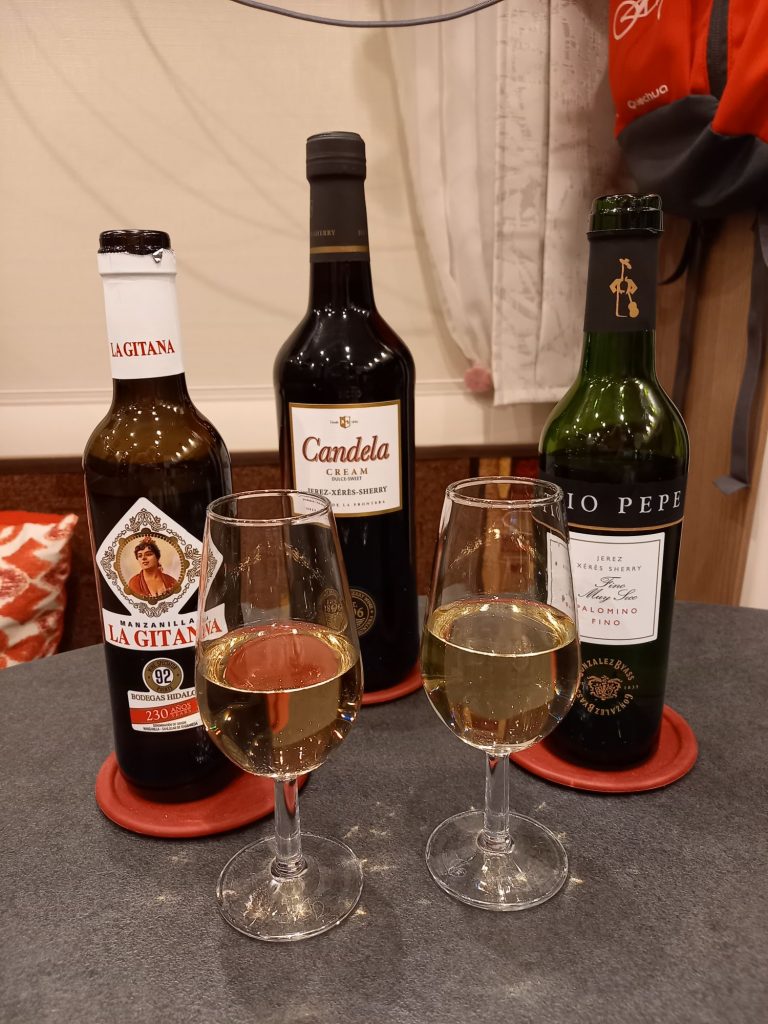 Nach gut 2,5 Stunden und 9 km waren wir zurück im WoMo und da wir ja hier im Land des Sherrys sind, machen wir heute Abend unsere eigene Sherry-Verkostung: