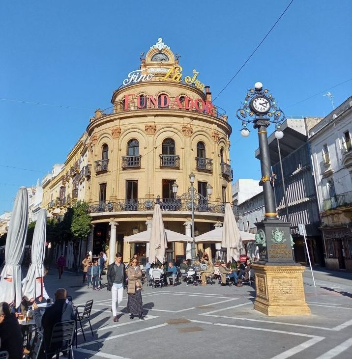 Auf dem Weg zurück kommen wir an einer der drei ältesten Sherry-Bodegas von Jerez vorbei, Tío Pepe.