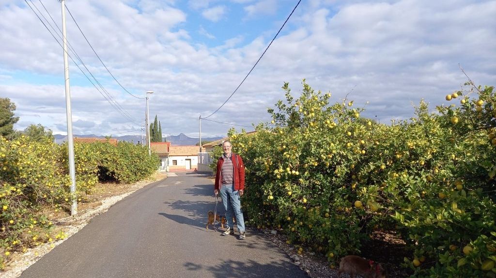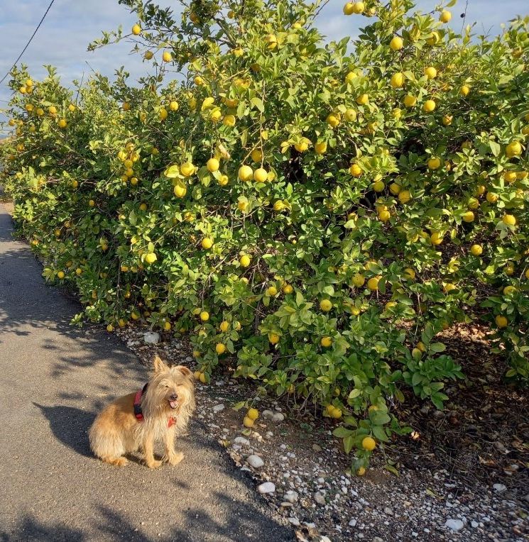 Wir machen mittags mit den Hunden einen Spaziergang durch die Zitronenhaine zu einem „Der-hat-Alles-Laden“.