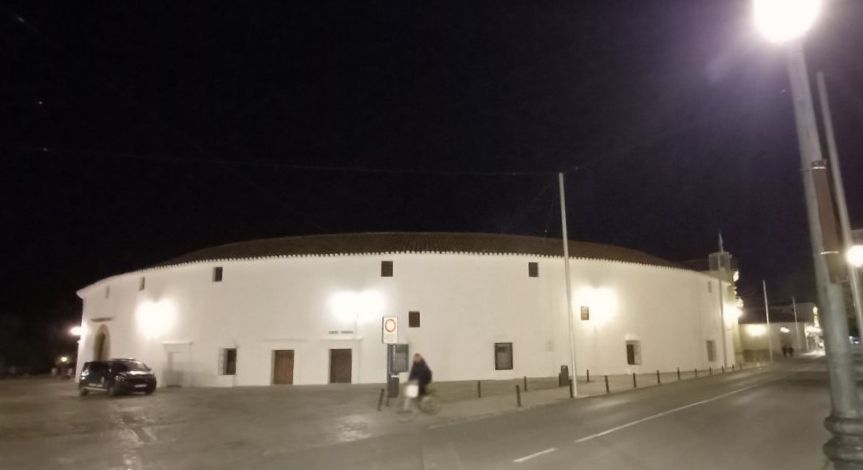 Dann durch die Fußgängerzone zurück zum WoMo, vorbei an der Stierkampfarena …