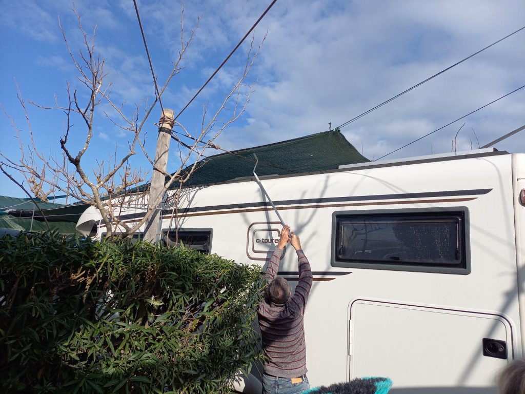 Mit vereinten Kräften anderer Dauercamper (viele sind jedes Jahr einige Monate hier) können wir unseren Hannibal befreien.