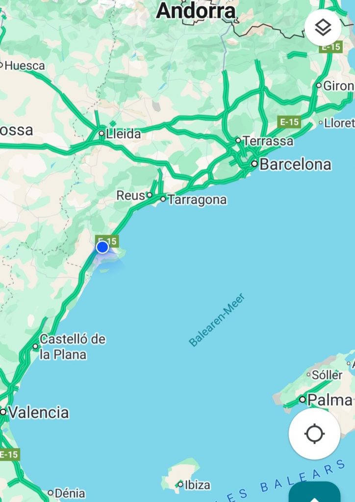 Nach der Grenze fahren wir auf die spanische Autopista del Mediterráneo (AP7), die seit einiger Zeit von der Grenze bis Alicante (!!!) kostenfrei ist.