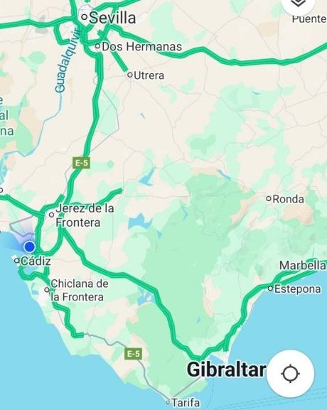Wir steuern einen Parkplatz in Valdelagrana bei El Puerto de Santa Maria an – nur knapp 20 km entfernt. Vorher noch tanken für nur 1,298 € p.L. Diesel.