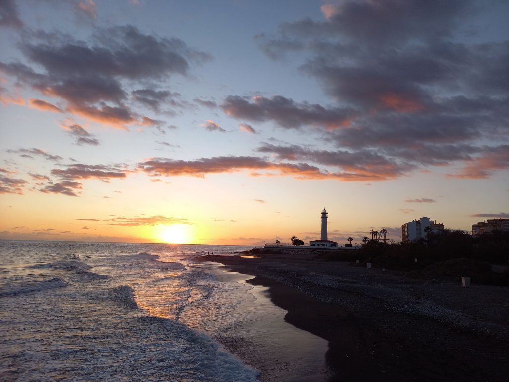 Aber Dank eines guten Tipps von unserer Freundin und einer genauen Wegbeschreibung finden wir einen schönen Platz für die Nacht. In Torrox-Costa am Leuchtturm, direkt am Meer inkl ausgewiesenem Hundestrand. Perfekt 😊. Hier sind WoMos zwar eigentlich verboten,  werden aber anscheinend im Winter geduldet 😇.
