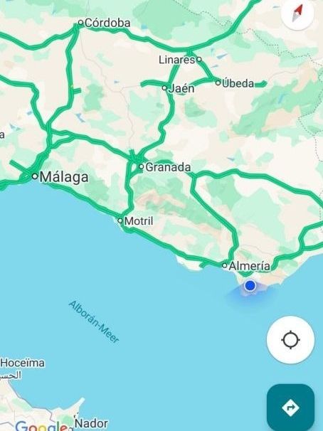 Wir packen nach dem Frühstück zusammen, füllen nochmal unseren Wassertank und ein paar Wasserflaschen auf (hier in Spanien ist das Wasser wie bei uns trinkbar) und machen uns auf den Weg nach Almeria.